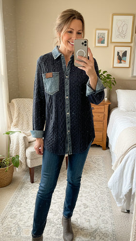 SPECIFIKATIONER Top type: Toppe Stil: Afslappet Materiale: Bomuldsblanding,Denim Lejlighed: Daglig Halsudskæring: V-udskæring Mønstertype: Farveblok Ærmetype: Almindeligt ærme Ærmelængde: Langærmet Pasform: Almindelig Sæson/årstid: Forår,Efterår Detaljer: Patchwork Pakken inkluderer: 1 x Top STØRRELSESTABEL (cm) Størrelse Buste Længde S 97...