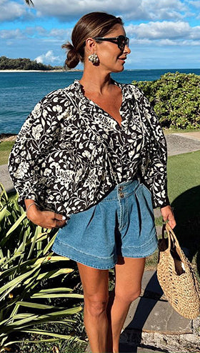 SPECIFIKATIONER Top type: Skjorte Stil: Afslappet Materiale: Bomuldsblanding Lejlighed: Daglig Halsudskæring: Revers Mønstertype: Tryk Ærmetype: Lanterneærmet Ærmelængde: Langærmet Pasform: Almindelig Sæson/årstid: Forår,Sommer Detaljer: Lomme Pakken inkluderer: 1 x Skjorte STØRRELSESTABEL (cm) Størrelse Buste Længde S 92 68 M 96 69.5 ...