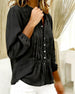 SPECIFIKATIONER Top type: Bluser Stil: Afslappet Materiale: Bomuldsblanding Lejlighed: Daglig Halsudskæring: Ståkrave Mønstertype: Ensfarvet Ærmetype: Almindeligt ærme Ærmelængde: Langærmet Pasform: Almindelig Sæson/årstid: Forår,Sommer Detaljer: Knapper,Rynket Pakken inkluderer: 1 x Bluse STØRRELSESTABEL (cm) Størrelse Buste Længde S 97 6...