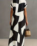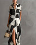 SPECIFIKATIONER Stil: Chic Materiale: Bomuldsblanding Kjoletype: A-linje Kjolelængde: Maxi Halsudskæring: Revers Mønstertype: Geometrisk tryk Ærmetype: Almindeligt ærme Ærmelængde: Kortærmet Detaljer: Knapper Pasform: Almindelig Sæson/årstid: Forår,Sommer Lejlighed: Daglig Pakken inkluderer: 1 x Kjole STØRRELSESTABEL (cm) Størrelse Buste Læn...