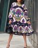 Moderne Trykt Kjole Med Rund Halsudskæring Og Lange Ærmer