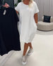 SPECIFIKATIONER Stil: Afslappet Materiale: Bomuldsblanding Kjoletype: Shift-kjole Kjolelængde: Knælængde Halsudskæring: Rund hals Mønstertype: Ensfarvet Ærmetype: Almindeligt ærme Ærmelængde: Kortærmet Pasform: Almindelig Sæson/årstid: Forår,Sommer Lejlighed: Daglig Pakken inkluderer: 1 x Kjole STØRRELSESTABEL (cm) Størrelse Buste Længde S...