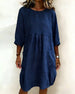 SPECIFIKATIONER Stil: Afslappet Materiale: 20% Hør 80% Bomuld Kjoletype: A-linje Kjolelængde: Knælængde Halsudskæring: Rund hals Mønstertype: Ensfarvet Ærmetype: Almindeligt ærme Ærmelængde: Trekvartærmet Detaljer: Lomme Pasform: Almindelig Sæson/årstid: Forår,Sommer Lejlighed: Daglig Pakken inkluderer: 1 x Kjole STØRRELSESTABEL (cm) S...
