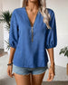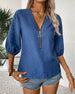 SPECIFIKATIONER Top type: Bluser Stil: Afslappet Materiale: Bomuldsblanding Lejlighed: Daglig Halsudskæring: V-udskæring Mønstertype: Ensfarvet Ærmetype: Lanterneærmet Ærmelængde: Halve ærmer Pasform: Almindelig Sæson/årstid: Forår,Sommer Detaljer: Lynlås Pakken inkluderer: 1 x Bluse STØRRELSESTABEL (cm) Størrelse Buste Længde S 97 65 M ...