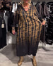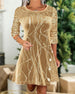Moderne Trykt Kjole Med Rund Halsudskæring Og Lange Ærmer