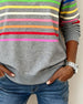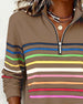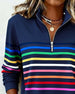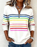 Mode-Sweatshirt Med Halv Lynlås Og Regnbuestriber