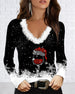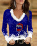 SPECIFIKATIONER Top type: Toppe Stil: Elegant, Fest Materiale: Spandex, Polyester Lejlighed: Fest, I byen Halsudskæring: V-udskæring Mønstertype: Tryk, Julevinglas Ærmetype: Almindeligt ærme Ærmelængde: Langærmet Pasform: Almindelig Sæson/årstid: Efterår, Vinter Pakken inkluderer: 1 x Top STØRRELSESTABEL (cm) Størrelse Buste Læng...