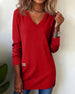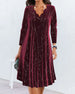 SPECIFIKATIONER Stil: Afslappet Materiale: Bomuldsblanding Kjoletype: Shift-kjole Kjolelængde: Midi Halsudskæring: V-udskæring Mønstertype: Pailletter,Ensfarvet Ærmetype: Almindeligt ærme Ærmelængde: Langærmet Pasform: Almindelig Sæson/årstid: Efterår,Vinter Lejlighed: Daglig Pakken inkluderer: 1 x Kjole STØRRELSESTABEL (cm) Størrelse B...