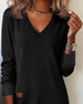 SPECIFIKATIONER Top type: Bluser Stil: Elegant Materiale: 100% Polyester Lejlighed: Daglig, Ferie Halsudskæring: V-udskæring Mønstertype: Ensfarvet Ærmetype: Vidærmet Ærmelængde: Langærmet Pasform: Almindelig Sæson/årstid: Efterår, Vinter Detaljer: Pjusket Pakken inkluderer: Bluse STØRRELSESTABEL (cm) Størrelse Buste Længde Ærme...