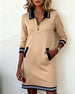 SPECIFIKATIONER Stil: Afslappet Materiale: Bomuldsblanding Kjoletype: Shift-kjole Kjolelængde: Knælængde Halsudskæring: Revers Mønstertype: Ensfarvet Ærmetype: Almindeligt ærme Ærmelængde: Langærmet Detaljer: Lomme,Lynlås Pasform: Almindelig Sæson/årstid: Efterår,Vinter Lejlighed: Daglig Pakken inkluderer: 1 x Kjole STØRRELSESTABEL (cm) Stør...