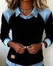 Langærmet Bluse Med Tryk Og Faux To-Delts Udseende