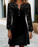 SPECIFIKATIONER Stil: Elegant,Fest Materiale: Palietter,Fløjl Kjoletype: Shift-kjole Kjolelængde: Knælængde Mønstertype: Prikket Ærmetype: Almindeligt ærme Ærmelængde: Trekvartærmet Detaljer: Patchwork,Knapper,Uregelmæssig Pasform: Almindelig Sæson/årstid: Forår,Efterår,Vinter Lejlighed: Daglig Pakken inkluderer: 1 x Kjole STØRRELSESTABEL (cm)...