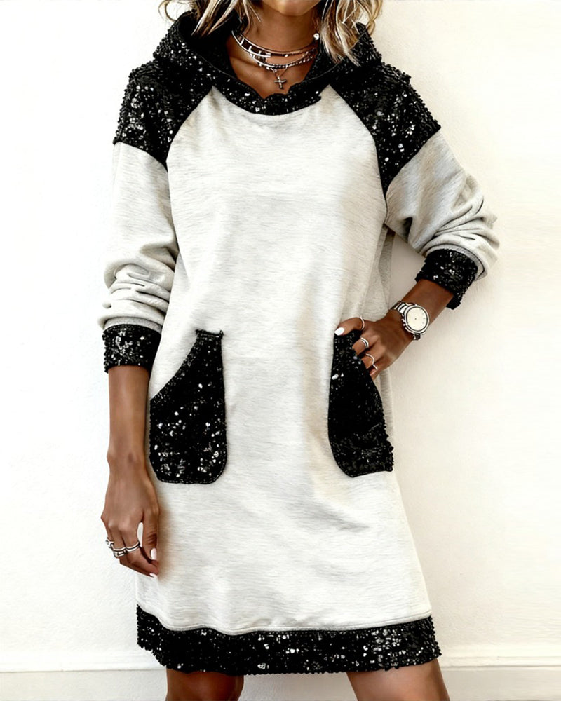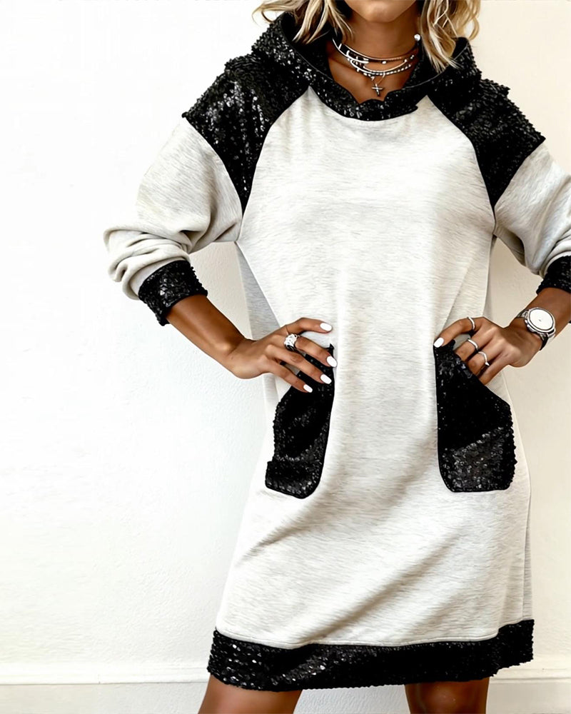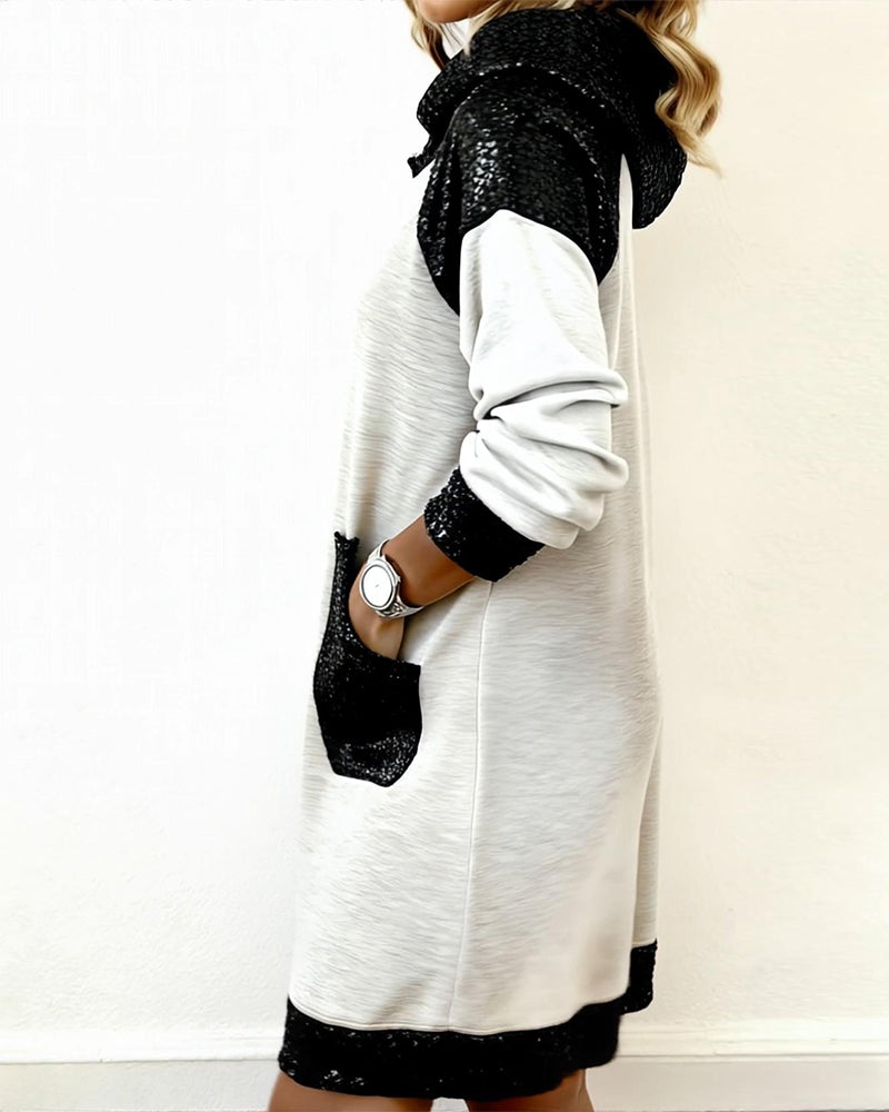 NYE Icon1 Langærmet Kjole Med Hætte Og Kontrastfarvede Paneler