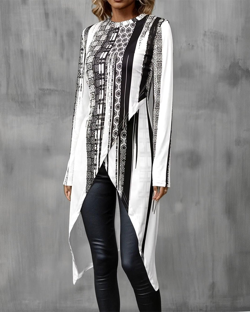 Genser Med Geometrisk Mønster Og Rundhals Egenskaper