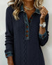 SPECIFIKATIONER Top type: Bluser Stil: Afslappet Materiale: A: 95% Polyester, 5% Spandex; B: 100% Bomuld Lejlighed: Daglig Halsudskæring: Krave Ærmetype: Almindeligt ærme Ærmelængde: Langærmet Pasform: Almindelig Sæson/årstid: Forår,Efterår,Vinter Detaljer: Patchwork Pakken inkluderer: 1 x Bluse STØRRELSESTABEL (cm) Størrelse Længde...