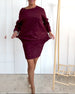Elegant Kjole Med Puffærmer Og Patchworkdetaljer