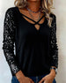 Top sexet v-hals mesh og ensfarvet pailletter