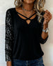 SPECIFIKATIONER Top type: Toppe Stil: Afslappet Materiale: Bomuldsblanding,Palietter Lejlighed: Daglig Halsudskæring: V-udskæring Mønstertype: Pailletter,Ensfarvet Ærmetype: Almindeligt ærme Ærmelængde: Trekvartærmet Pasform: Almindelig Sæson/årstid: Forår,Efterår,Vinter Detaljer: Patchwork Pakken inkluderer: 1 x Top STØRRELSESTABEL (cm) Stø...