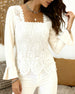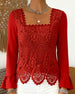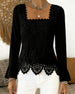 Hæklet Bluse Med Vid Halsudskæring Og Patchworkdetaljer
