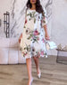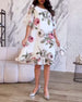 Elegant blomsterprintet knælang kjole med rund hals
