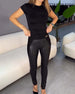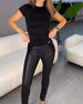 SPECIFIKATIONER Stil: Afslappet Materiale: Bomuldsblanding,PU læder Mønstertype: Ensfarvet Buksetype: Konventionel Bukselængde: Lang Taljetype: Høj talje Pasform: Almindelig Sæson/årstid: Efterår,Vinter Detaljer: Patchwork Lejlighed: Daglig Pakken inkluderer: 1 x Bukser STØRRELSESTABEL (cm) Størrelse Talje Hofte Længde S 67 98 98 M 72 10...