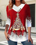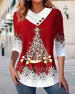 Top Med Asymmetrisk Krage, Knapdetalj Och Julgranmønster