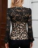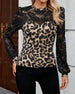 Elegant T-shirt med leopardprint og blondeprint, lange ærmer