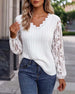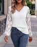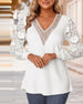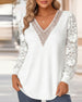 Elegant t-shirt med v-hals og blondeprint, lange ærmer