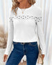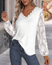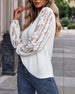 T-shirt med rund hals og blondepatchwork, lange ærmer