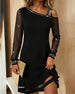SPECIFIKATIONER Stil: Elegant Materiale: Bomuldsblanding Kjoletype: A-linje Kjolelængde: Knælængde Halsudskæring: Kold skulder Mønstertype: Ensfarvet Ærmetype: Almindeligt ærme Ærmelængde: Langærmet Detaljer: Patchwork,Varmboring Pasform: Almindelig Sæson/årstid: Efterår,Vinter Lejlighed: Daglig,Fest Pakken inkluderer: 1 x Kjole STØRRELSESTABE...