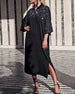 SPECIFIKATIONER Stil: Afslappet Materiale: Bomuldsblanding Kjoletype: Shift-kjole Kjolelængde: Midi Halsudskæring: Ståkrave Ærmetype: Flagermuse-ærmer Ærmelængde: Trekvartærmet Detaljer: Flænge,Lynlås Pasform: Almindelig Sæson/årstid: Forår,Efterår,Vinter Lejlighed: Daglig Pakken inkluderer: 1 x Kjole STØRRELSESTABEL (cm) Størrelse Buste Læn...