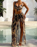 SPECIFIKATIONER Stil: Afslappet, Ferie Materiale: Chiffon,Polyester Mønstertype: Tryk Top type: Cami top Halsudskæring: Spaghetti-stropper Ærmelængde: Uden ærmer, Langærmet Buksetype: Brede ben Bukselængde: Lang Pasform: Løs Sæson/årstid: Forår, Sommer Lejlighed: Daglig, Ferie Pakken inkluderer: 1 x Jumpsuits, 1 x Cover up STØRRELSESTABEL (...