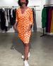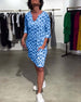 V-halset afslappet kjole med retroprint