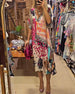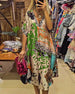 FUNKTIONER Elegant V-halsdesign: Det elegante V-halsdesign fremhæver perfekt den charmerende halslinje og tilføjer et strejf af elegance og charme til det overordnede look. Udsøgte prints: De unikke og udsøgte prints er som kunstværker, der pynter på nederdelen, hvilket gør dig til fokus, uanset hvor du går, og viser din modesmag. Smarte knu...