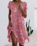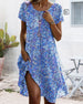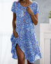 Kjole Rund Hals Kort Ærme Blomstertryk