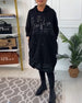 Afslappet sort løs kjole med rund hals og lommer
