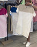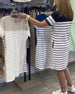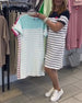 SPECIFIKATIONER Stil: Afslappet Materiale: Bomuldsblanding Kjoletype: Shift-kjole Kjolelængde: Knælængde Halsudskæring: Rund hals Mønstertype: Stribet Ærmelængde: Kortærmet Detaljer: Lomme Pasform: Almindelig Sæson/årstid: Forår,Sommer Lejlighed: Daglig Pakken inkluderer: 1 x Kjole STØRRELSESTABEL (cm) Størrelse Buste Længde S 97 100 M 1...