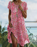 V-halset lyserød kjole med svaj og print