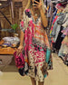 Lang mønstret feriekjole med V-hals