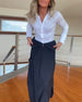 Stilfuld mørk nederdel med lynlåslommer