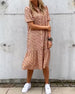 SPECIFIKATIONER Stil: Elegant Materiale: Chiffon,Polyester Kjoletype: A-linje Kjolelængde: Midi Halsudskæring: V-udskæring Mønstertype: Tryk Ærmetype: Lanterneærmet Ærmelængde: Langærmet Detaljer: Knapper Pasform: Almindelig Sæson/årstid: Forår, Sommer, Efterår Lejlighed: Daglig Pakken inkluderer: 1 x Kjole STØRRELSESTABEL (cm) ...