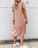 Prikket shift kjole med korte ærmer