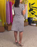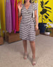 Delvist stribet patchwork-kjole med leopardprint og lynlås