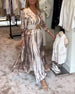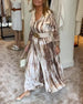 SPECIFIKATIONER Stil: Elegant Materiale: Bomuldsblanding Kjoletype: A-linje Kjolelængde: Maxi Halsudskæring: V-udskæring Mønstertype: Tryk Ærmetype: Almindeligt ærme Ærmelængde: Langærmet Detaljer: Flænge Pasform: Almindelig Sæson/årstid: Forår, Sommer Lejlighed: Daglig Pakken inkluderer: 1 x Kjole STØRRELSESTABEL (cm) Størrelse Buste L...