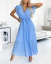 SPECIFIKATIONER Stil: Elegant Materiale: 100% Polyester Kjoletype: A-linje Kjolelængde: Midi Halsudskæring: V-udskæring Mønstertype: Ensfarvet Ærmetype: Pjuskærmer Ærmelængde: Kortærmet Detaljer: Snøre op, Rynket Pasform: Almindelig Sæson/årstid: Sommer Lejlighed: Daglig Pakken inkluderer: 1 x Kjole STØRRELSESTABEL (cm) Størrelse B...