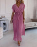 Kjole Med V-Hals Kortærmede Talje Plisseret Trykt