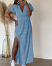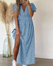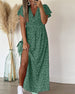 SPECIFIKATIONER Stil: Afslappet Kjoletype: Shift-kjole Kjolelængde: Maxi Halsudskæring: V-udskæring Materiale: 5%Spandex, 95%Polyester Mønstertype: Blomster-(garment type), Tryk Ærmetype: Pjuskærmer Ærmelængde: Kortærmet Detaljer: Flænge Pasform: Almindelig Sæson/årstid: Forår, Sommer, Efterår Lejlighed: Daglig Pakken inkluderer: 1 x Kjole ...