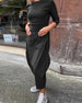 Ensfarvet sweaterkjole med uregelmæssig søm