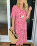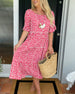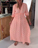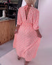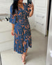 SPECIFIKATIONER Stil: Afslappet Materiale: 97% Polyester, 3% Spandex Kjoletype: A-linje Kjolelængde: Midi Halsudskæring: V-udskæring Mønstertype: Tryk Ærmetype: Almindeligt ærme Ærmelængde: Trekvartærmet Detaljer: Snøre op,Rynket Pasform: Almindelig Sæson/årstid: Forår,Sommer Lejlighed: Daglig Pakken inkluderer: 1 x Kjole STØRRELSESTABEL (...