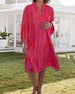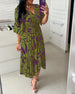 Moderne Trykt Kjole Med Rund Halsudskæring Og Lange Ærmer